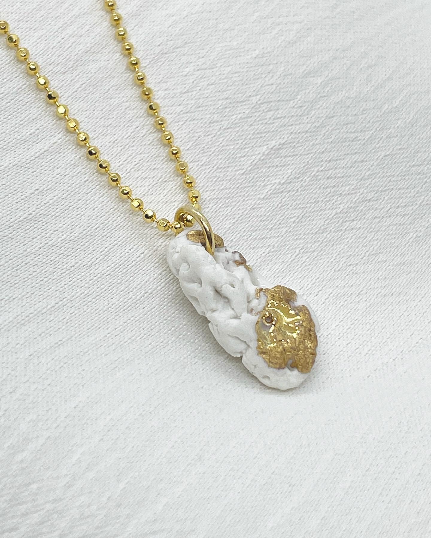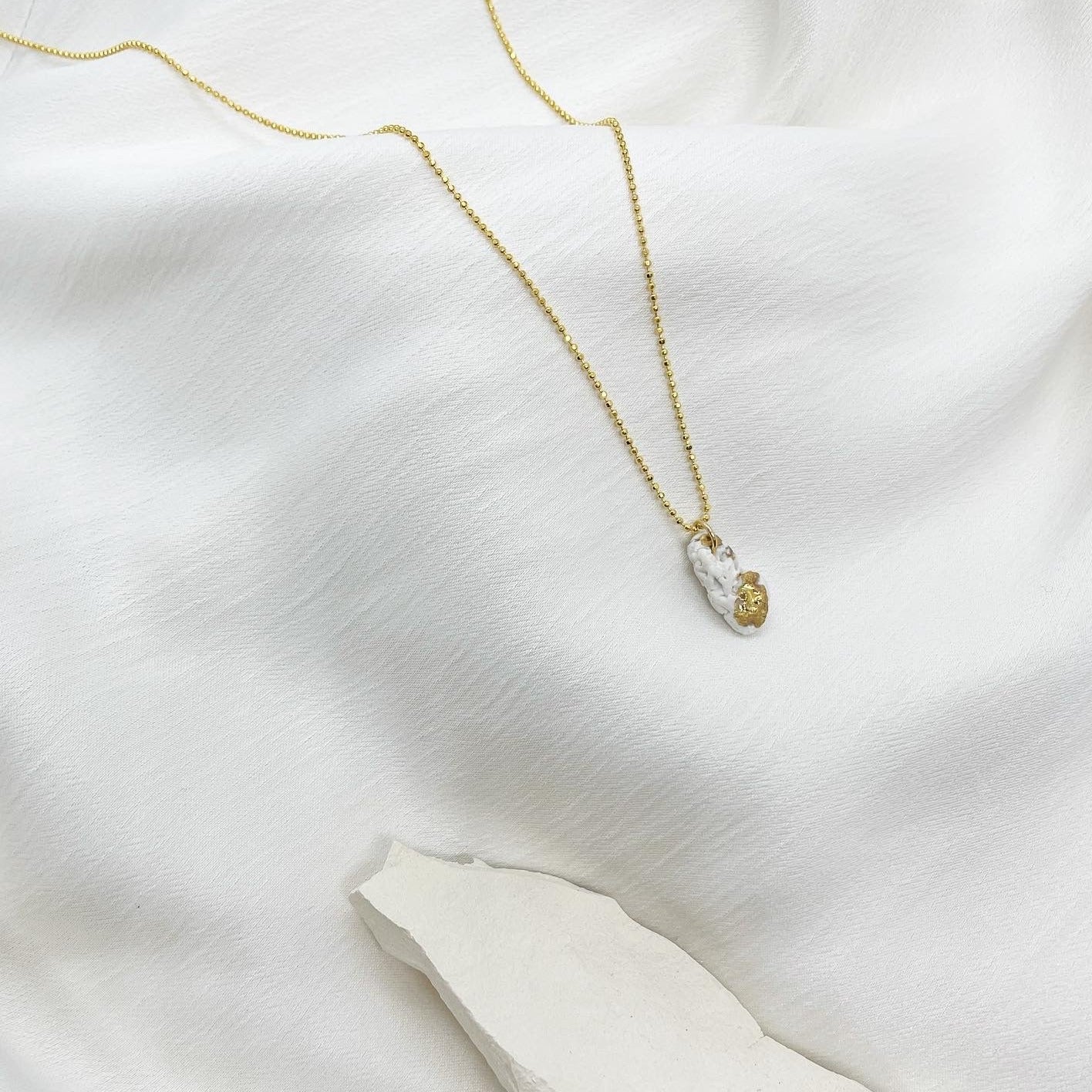 Uvær is a jewellery series in hand-formed porcelain with 925 silver/gold-plated rims. The series is based on observation of the small, broken but complete surroundings in Norwegian nature.