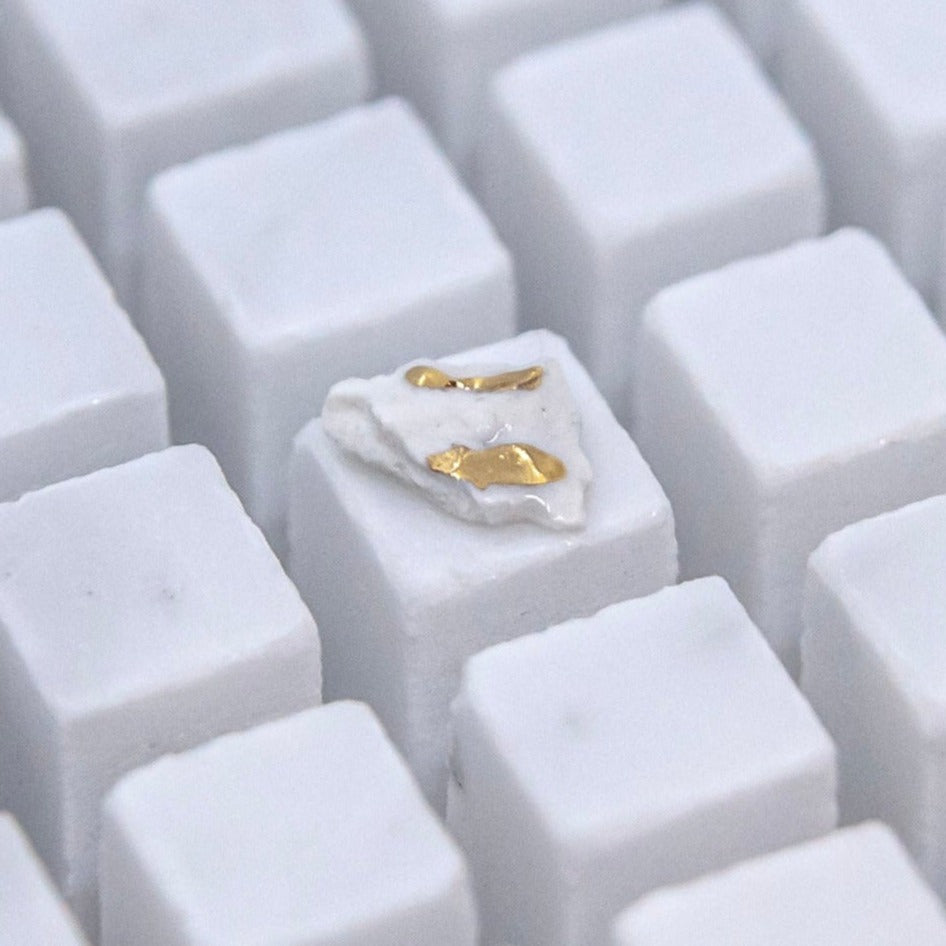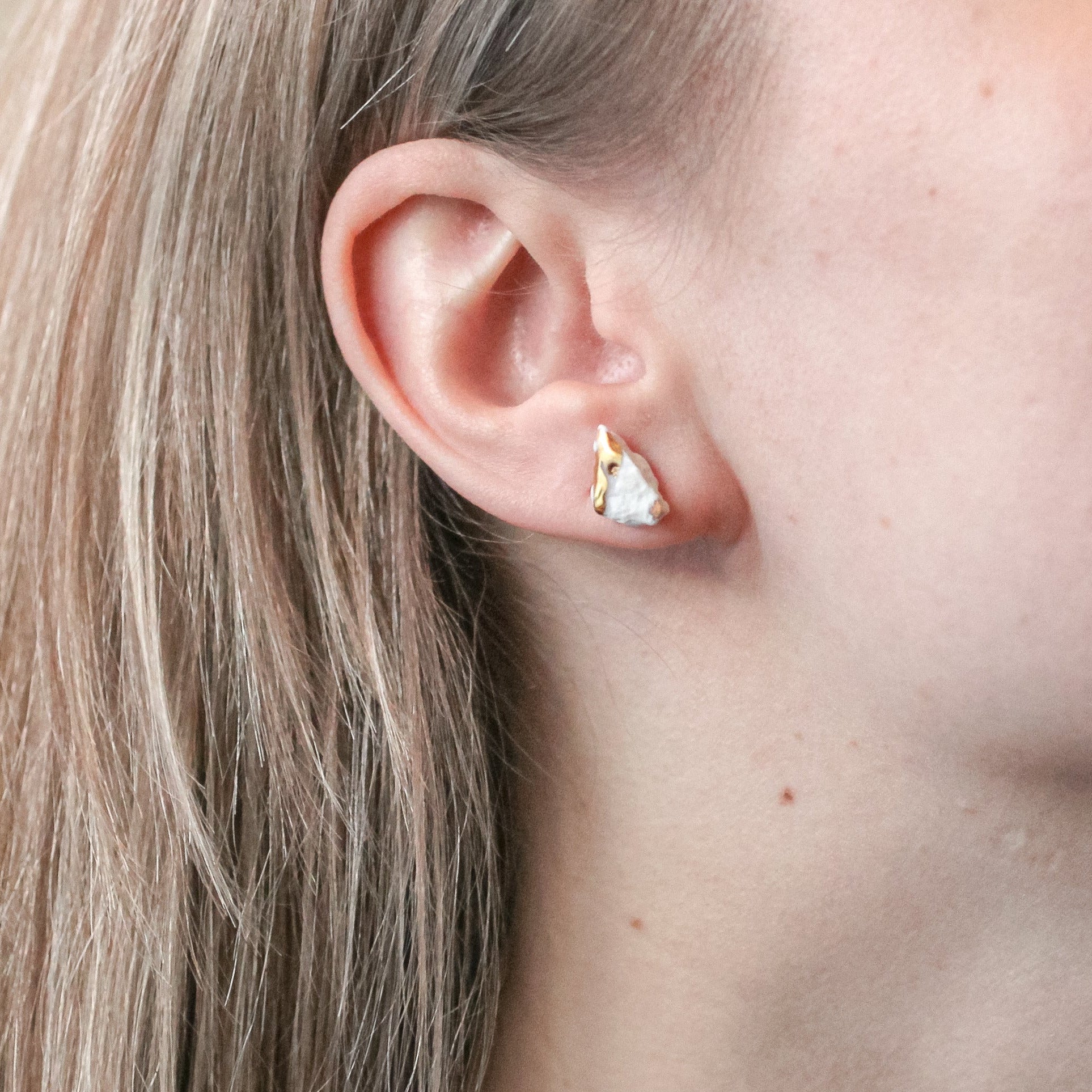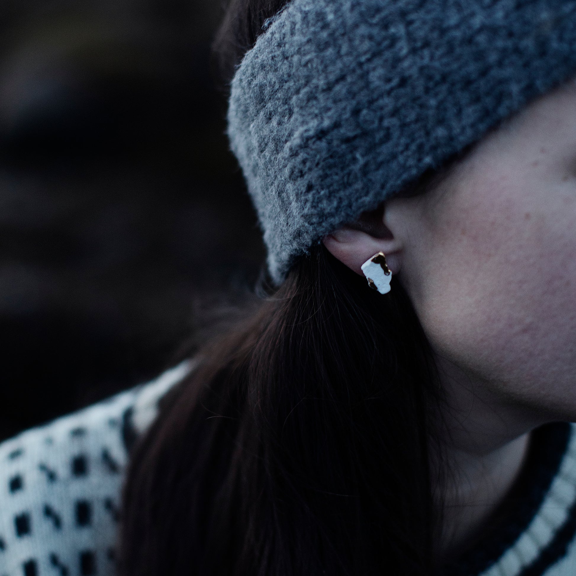 Uvær is a jewellery series in hand-formed porcelain with 925 silver/gold-plated rims. The series is based on observation of the small, broken but complete surroundings in Norwegian nature.